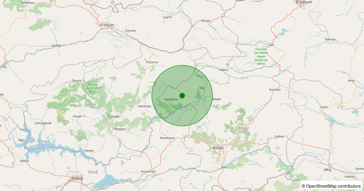 Son bir hafta içerisinde Bingöl şehri Yayladere - Alınyazı Köyü noktasından 100 km yarıçap içerisinde toplamda 67 deprem kaydedilmiştir. Bu depremlerden en büyüğü 3.0 büyüklüğünde ve en sığ odaklısı 1.40 kilometre derinlikte gerçekleşmiştir.