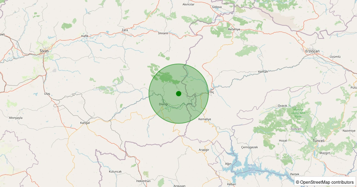 Son 7 gün içinde Divriği - Kesme Köyü noktasından 100 km yarıçap içerisinde meydana gelen diğer depremler: