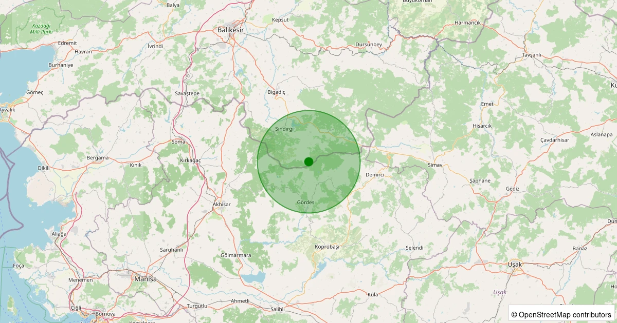 Son 7 gün içinde Sındırgı - Yüreğil/Merkez noktasından 100 km yarıçap içerisinde meydana gelen diğer depremler: