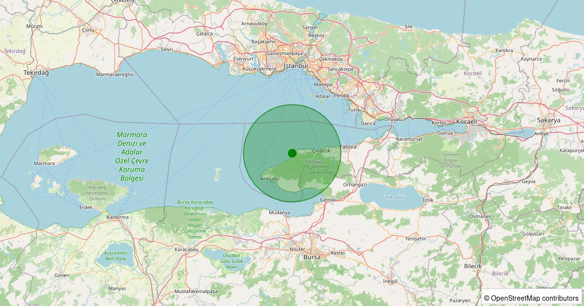 Son bir hafta içerisinde Marmara Denizi - [01.13 km] Çınarcık (Yalova) noktasından 100 km yarıçap içerisinde toplamda 34 deprem kaydedilmiştir. Bu depremlerden en büyüğü 2.6 büyüklüğünde ve en sığ odaklısı 0.00 kilometre derinlikte gerçekleşmiştir.