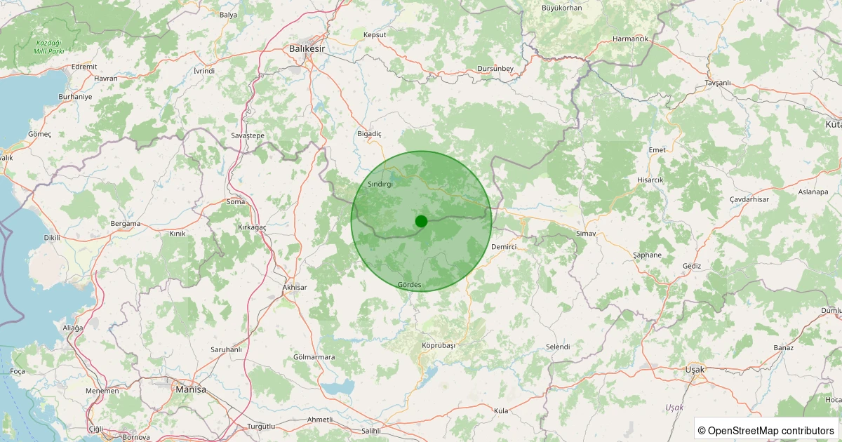 Son 7 gün içinde Sındırgı - Küçükdağdere noktasından 100 km yarıçap içerisinde meydana gelen diğer depremler: