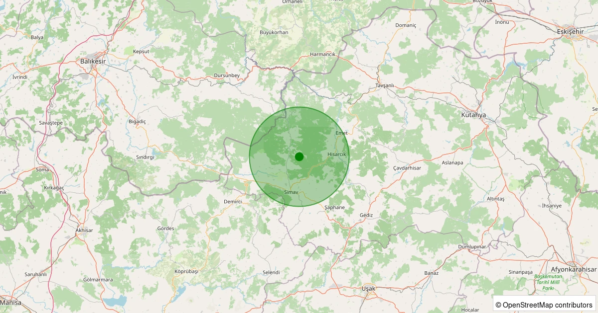 Son 7 gün içinde Simav - Maden Köyü noktasından 100 km yarıçap içerisinde meydana gelen diğer depremler: