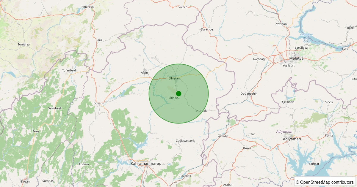 Son 7 gün içinde Ekinözü - Akpınar noktasından 100 km yarıçap içerisinde meydana gelen diğer depremler: