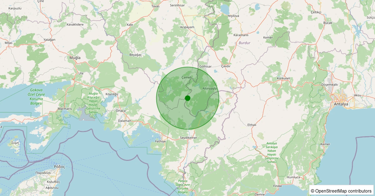 Son 7 gün içinde Gölhisar - Elmalıyurt Köyü noktasından 100 km yarıçap içerisinde meydana gelen diğer depremler: