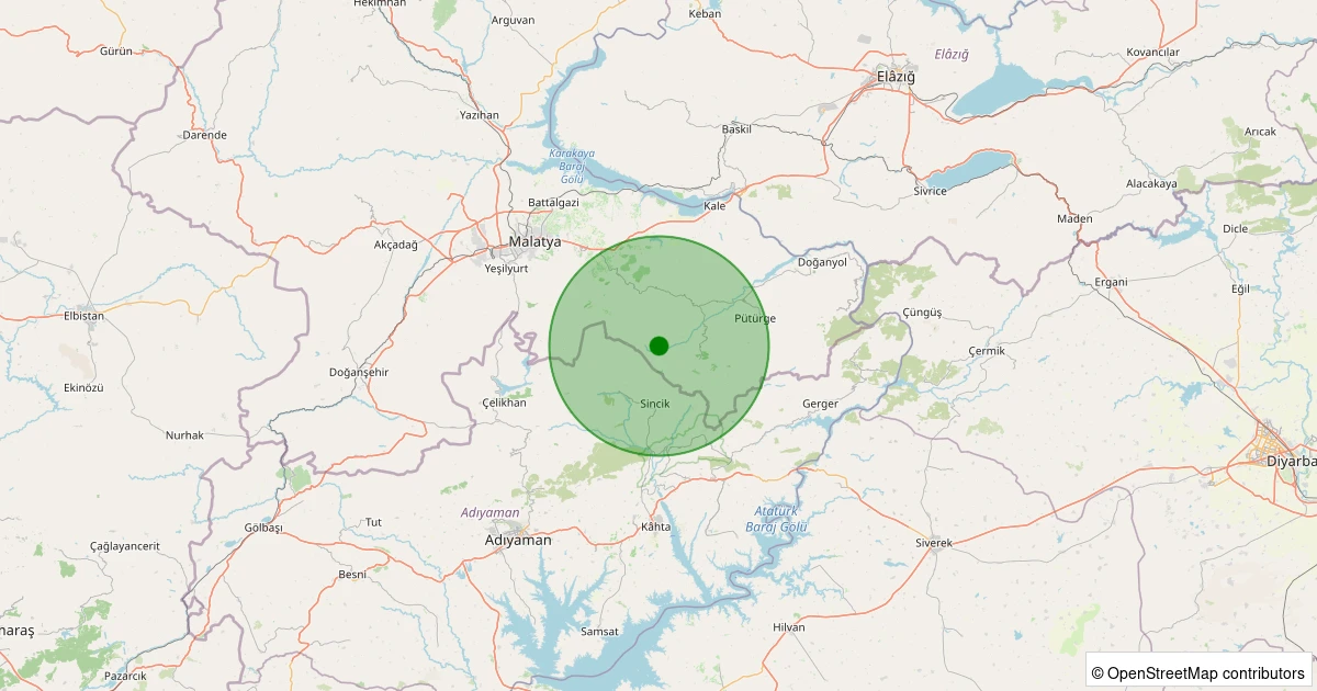 Son 7 gün içinde Pütürge - Arıtoprak Köyü noktasından 100 km yarıçap içerisinde meydana gelen diğer depremler: