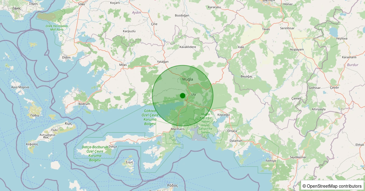 Son bir hafta içerisinde Muğla şehri Menteşe noktasından 100 km yarıçap içerisinde toplamda 121 deprem kaydedilmiştir. Bu depremlerden en büyüğü 2.5 büyüklüğünde ve en sığ odaklısı 0.00 kilometre derinlikte gerçekleşmiştir.