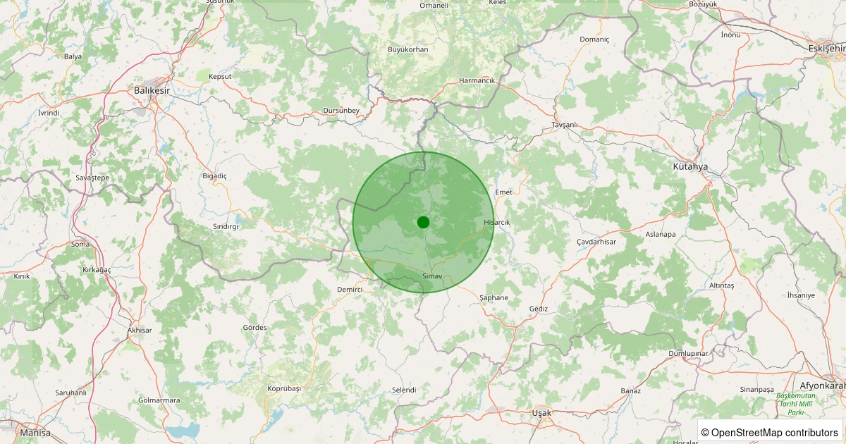 Son 7 gün içinde Simav - Yeniler Köyü noktasından 100 km yarıçap içerisinde meydana gelen diğer depremler:
