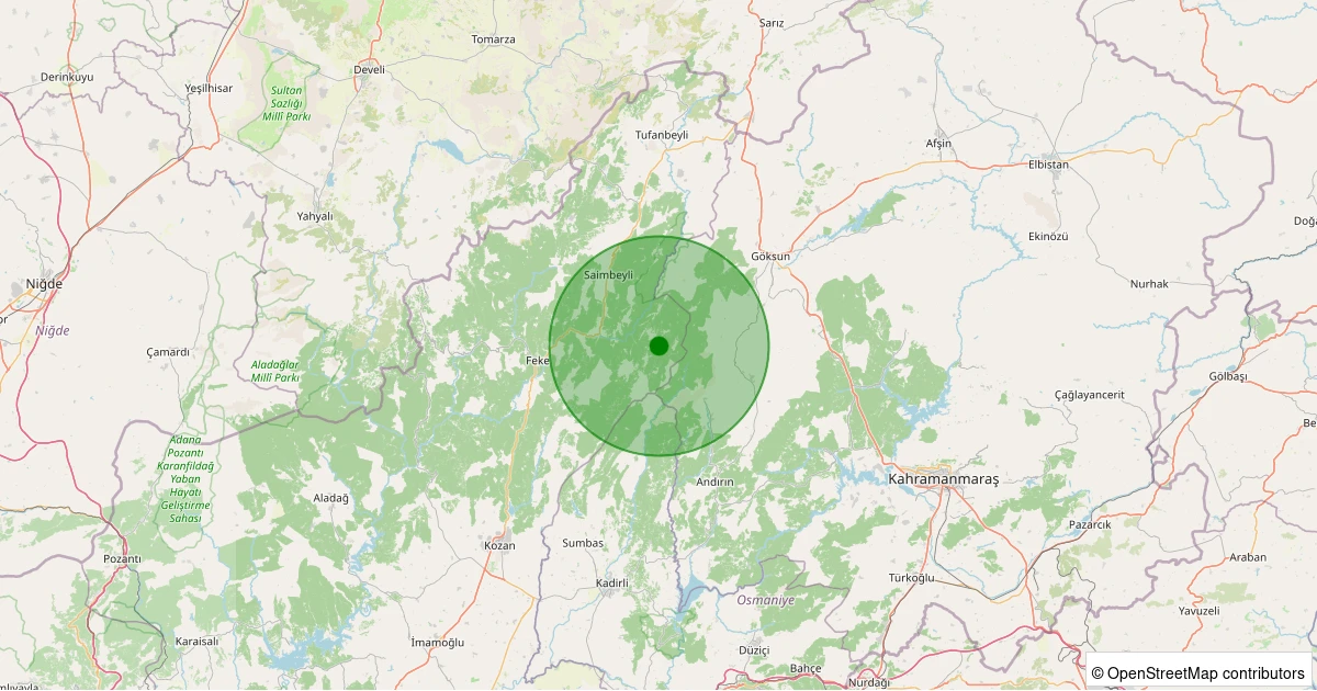 Son 7 gün içinde Saimbeyli - Karakuyu noktasından 100 km yarıçap içerisinde meydana gelen diğer depremler: