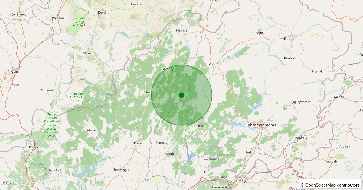 Son 7 gün içinde Saimbeyli - Halilbeyli noktasından 100 km yarıçap içerisinde meydana gelen diğer depremler: