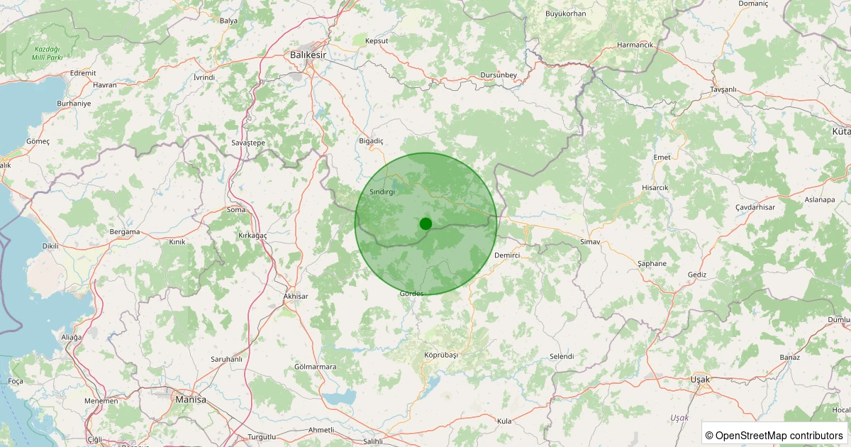 Son 7 gün içinde Sındırgı - Küçükdağdere noktasından 100 km yarıçap içerisinde meydana gelen diğer depremler:
