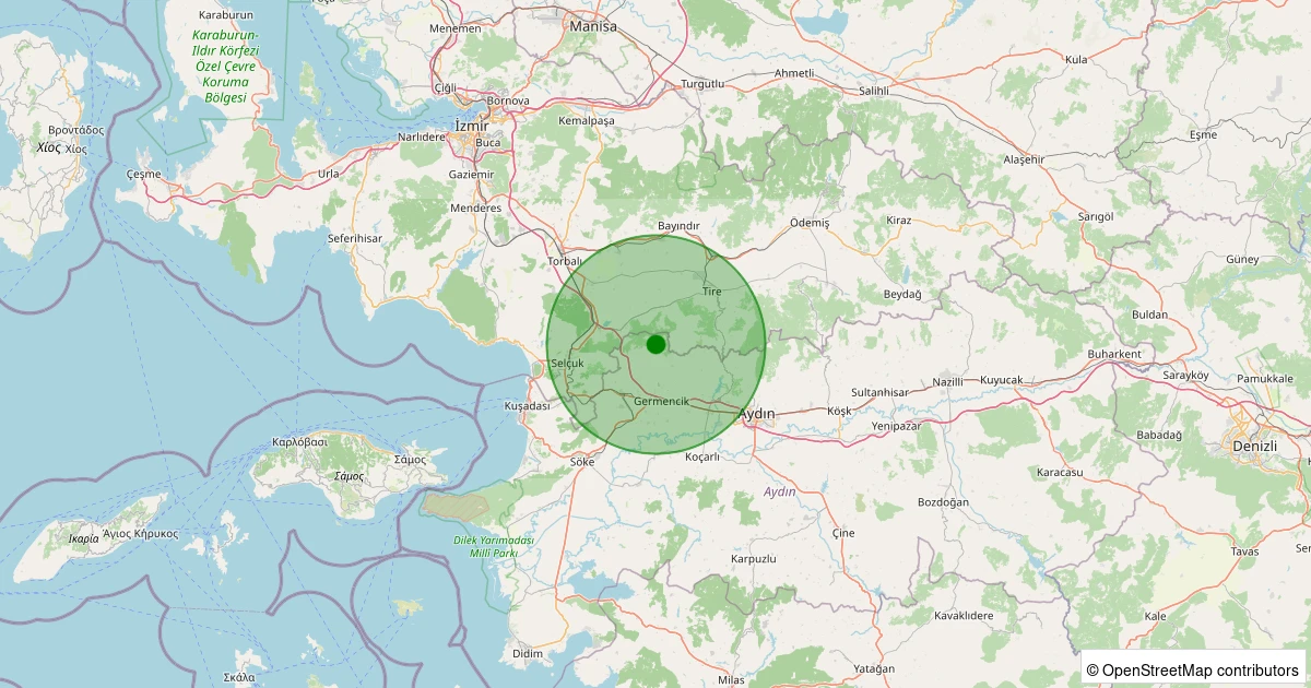 Son 7 gün içinde Germencik - Dampınar noktasından 100 km yarıçap içerisinde meydana gelen diğer depremler:
