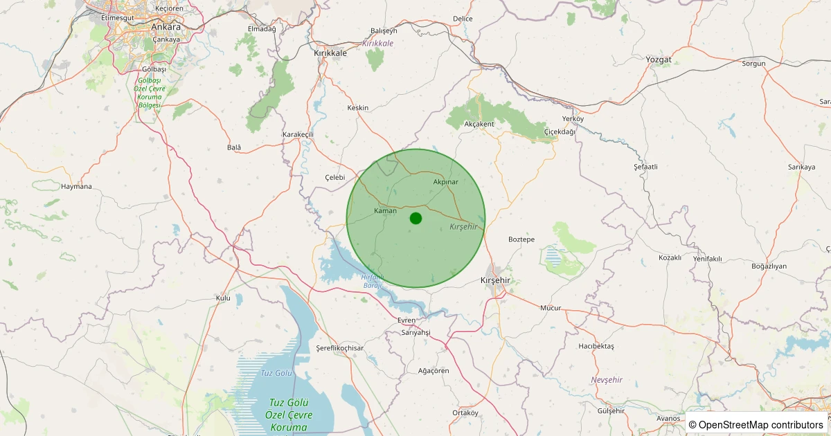 Son 7 gün içinde Kaman - Başköy Köyü noktasından 100 km yarıçap içerisinde meydana gelen diğer depremler: