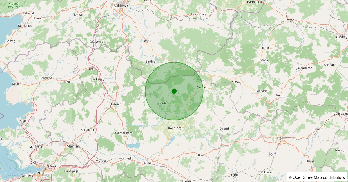 Son 7 gün içinde Gördes - Şeyhyayla noktasından 100 km yarıçap içerisinde meydana gelen diğer depremler: