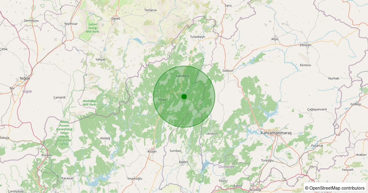 Son 7 gün içinde Saimbeyli noktasından 100 km yarıçap içerisinde meydana gelen diğer depremler:
