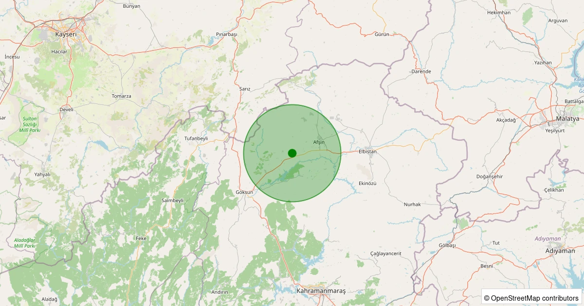 Son 7 gün içinde Afşin - Ağcaşar noktasından 100 km yarıçap içerisinde meydana gelen diğer depremler: