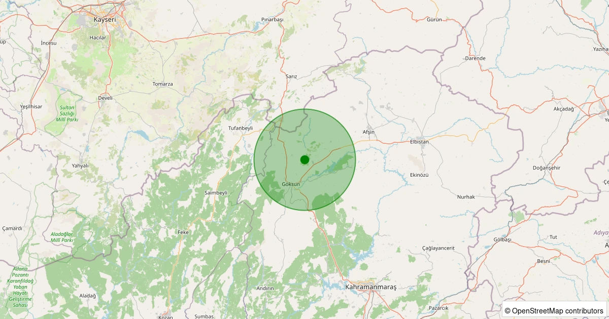 Son 7 gün içinde Göksun noktasından 100 km yarıçap içerisinde meydana gelen diğer depremler: