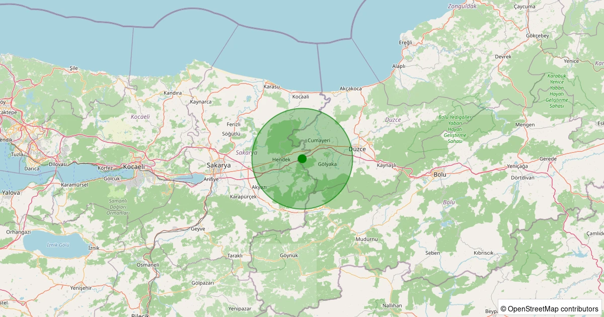 Son 7 gün içinde Gümüşova - Yeşilyayla Köyü noktasından 100 km yarıçap içerisinde meydana gelen diğer depremler: