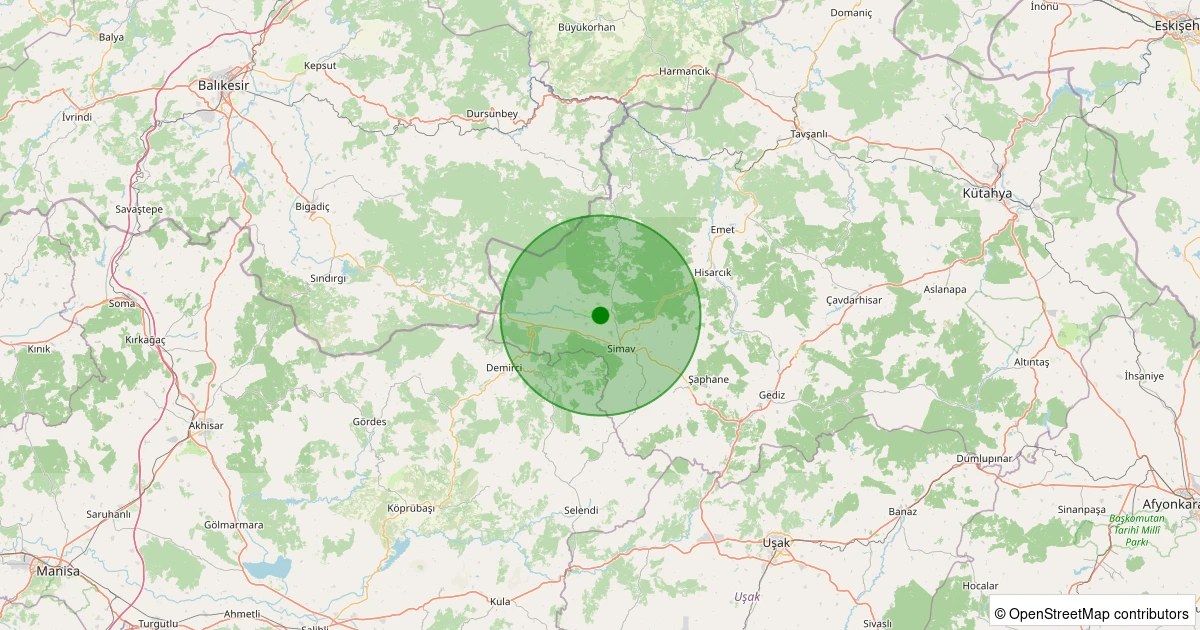 Son 7 gün içinde Simav - Naşa/Cumhuriyet noktasından 100 km yarıçap içerisinde meydana gelen diğer depremler: