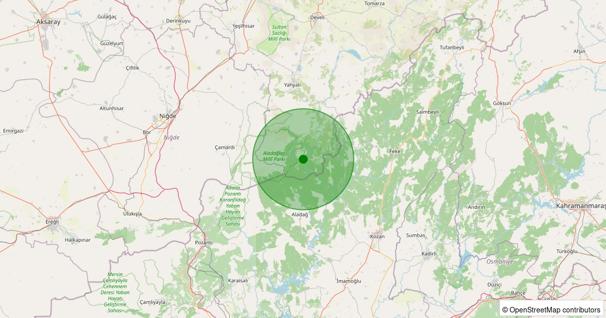 Son 7 gün içinde Yahyalı - Büyük Çakır noktasından 100 km yarıçap içerisinde meydana gelen diğer depremler: