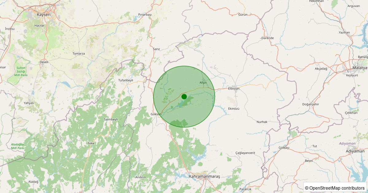Son 7 gün içinde Afşin - Deveboynu noktasından 100 km yarıçap içerisinde meydana gelen diğer depremler: