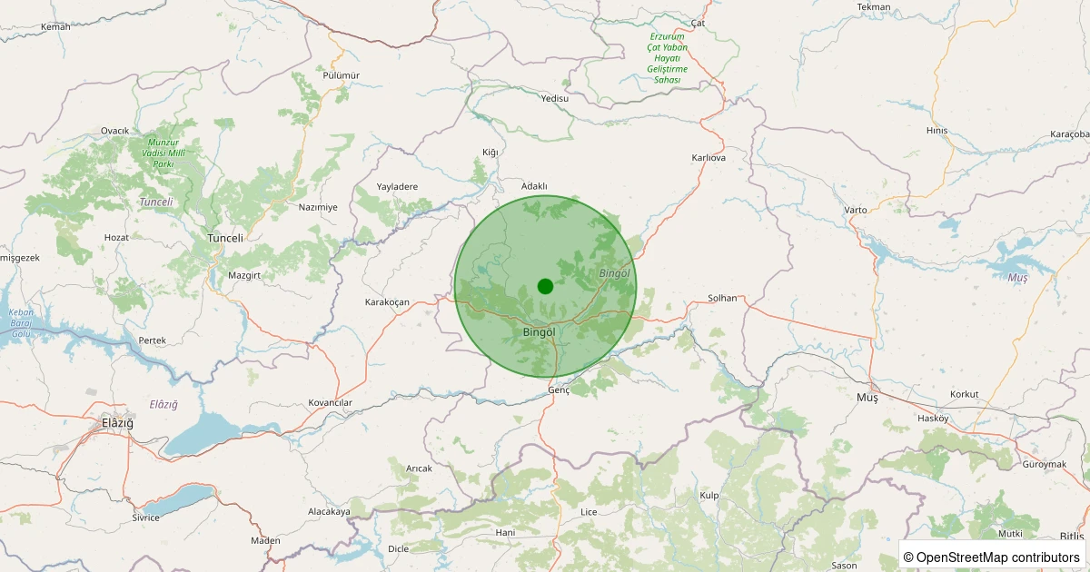 Son bir hafta içerisinde Bingöl şehri Merkez - Ağaçyolu Afet Köyü noktasından 100 km yarıçap içerisinde toplamda 25 deprem kaydedilmiştir. Bu depremlerden en büyüğü 3.0 büyüklüğünde ve en sığ odaklısı 1.80 kilometre derinlikte gerçekleşmiştir.