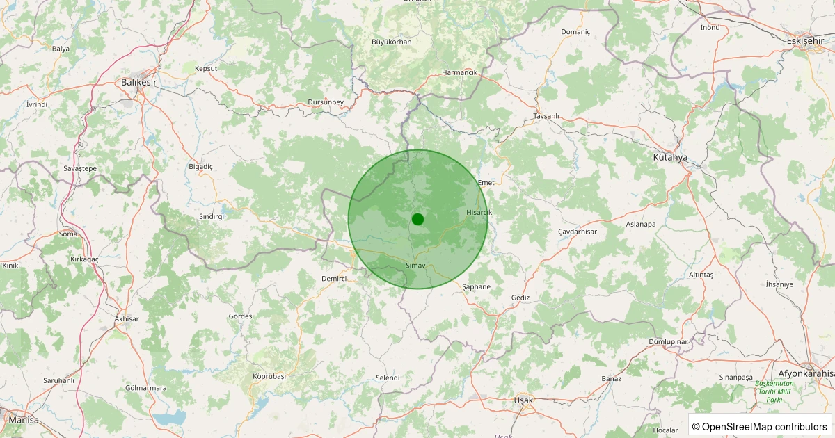 Son 7 gün içinde Simav - Yemişli Köyü noktasından 100 km yarıçap içerisinde meydana gelen diğer depremler: