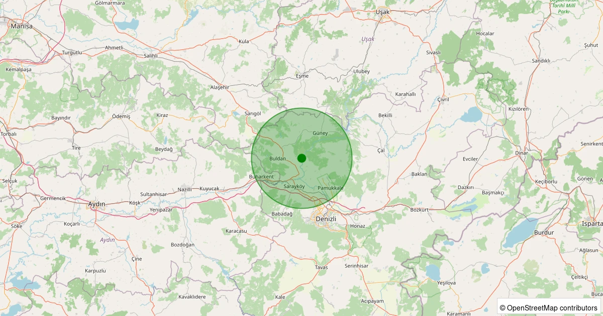 Son 7 gün içinde Buldan - Yenicekent noktasından 100 km yarıçap içerisinde meydana gelen diğer depremler: