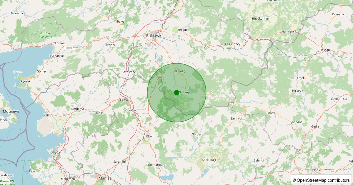 Son 7 gün içinde Sındırgı - Kozlu noktasından 100 km yarıçap içerisinde meydana gelen diğer depremler:
