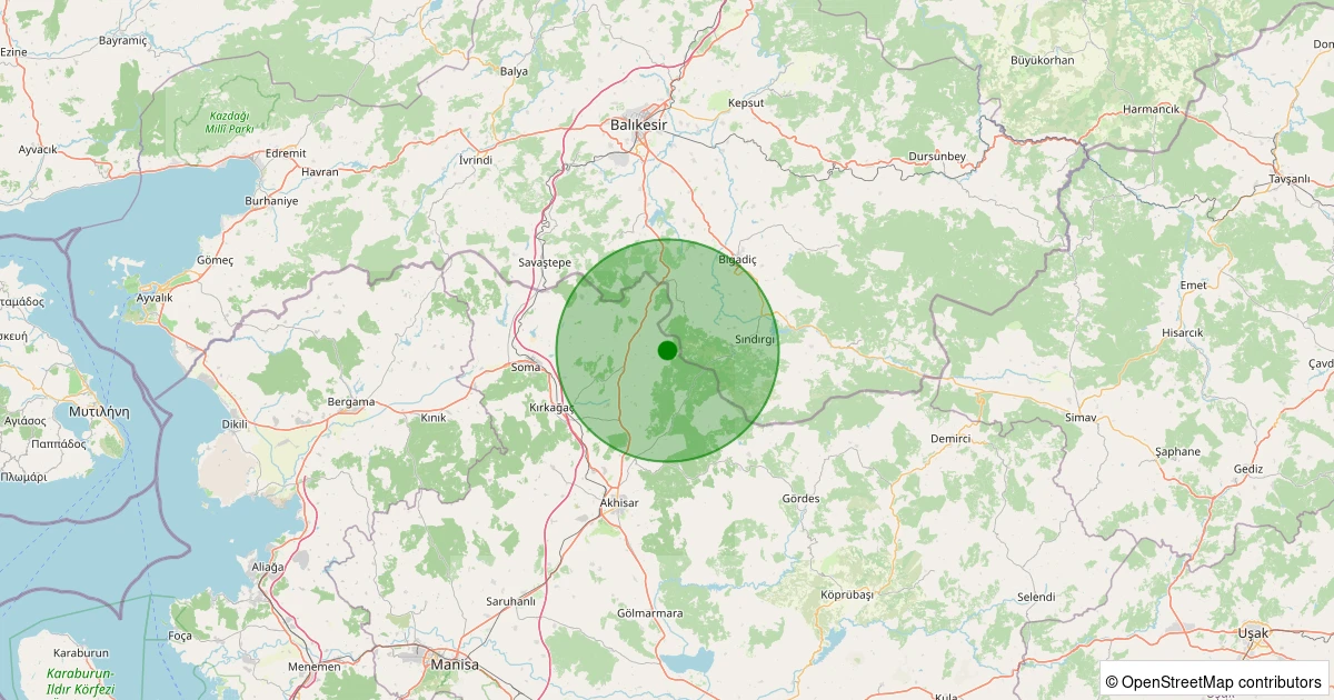 Son 7 gün içinde Kırkağaç - Hacet noktasından 100 km yarıçap içerisinde meydana gelen diğer depremler: