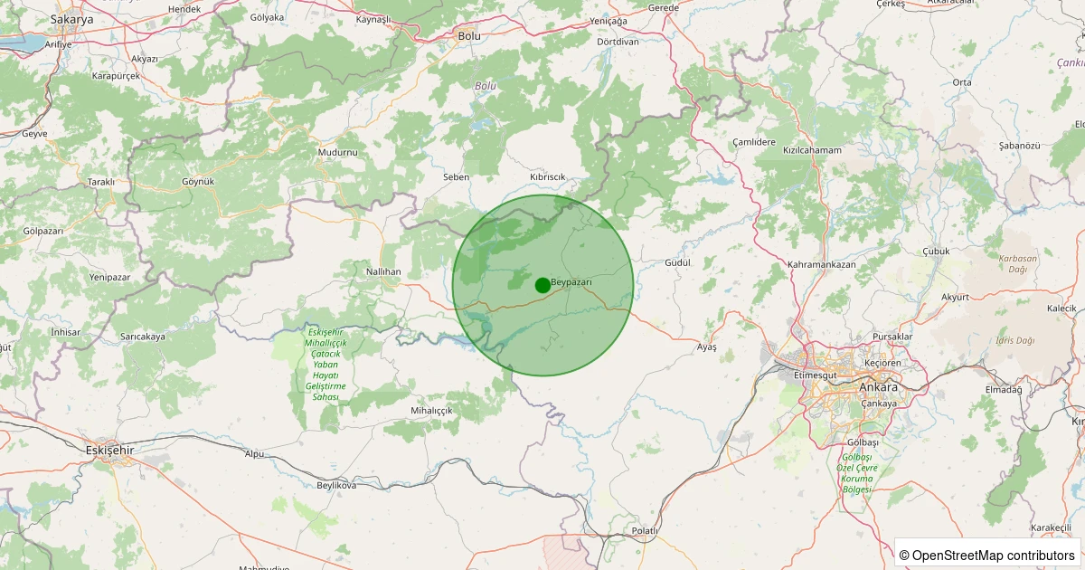 Son 7 gün içinde Beypazarı - Kuyucak noktasından 100 km yarıçap içerisinde meydana gelen diğer depremler:
