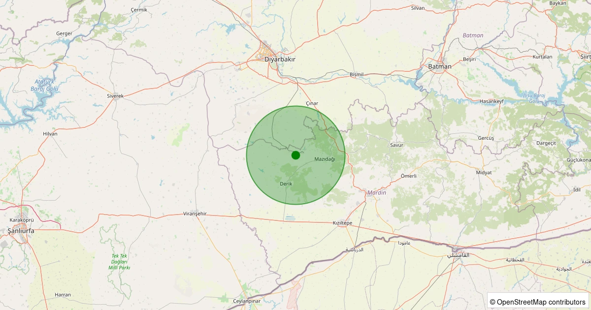 Son 7 gün içinde Mazıdağı - Karataş Köyü noktasından 100 km yarıçap içerisinde meydana gelen diğer depremler: