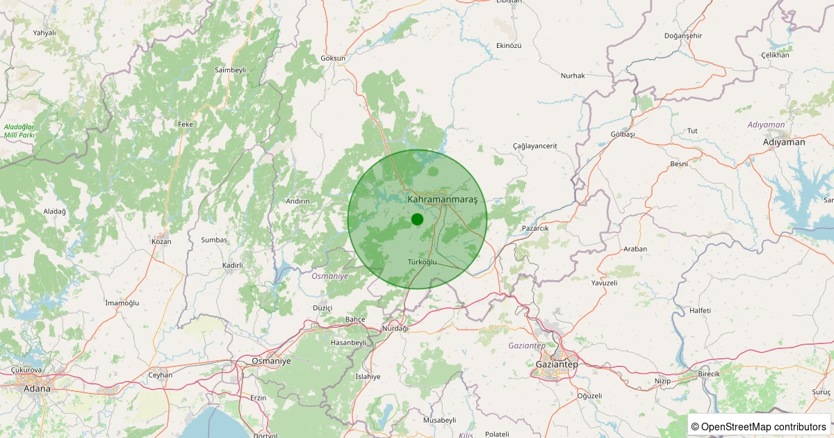 Son 7 gün içinde Onikişubat - Yeşilyurt noktasından 100 km yarıçap içerisinde meydana gelen diğer depremler: