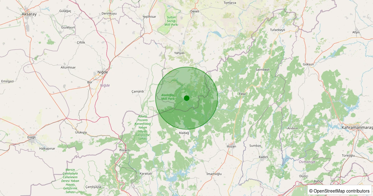Son 7 gün içinde Yahyalı - Büyük Çakır noktasından 100 km yarıçap içerisinde meydana gelen diğer depremler: