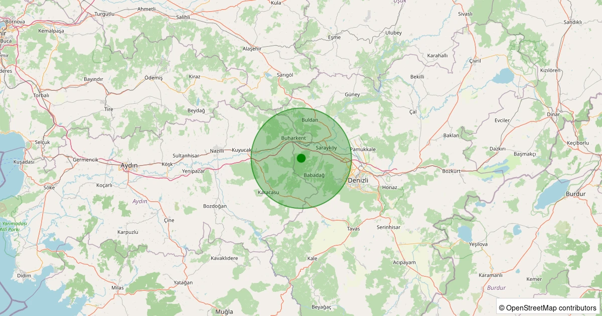Son 7 gün içinde Sarayköy - Tırkaz Köyü noktasından 100 km yarıçap içerisinde meydana gelen diğer depremler: