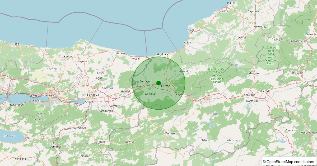 Son 7 gün içinde Çilimli - Alacamescit Köyü noktasından 100 km yarıçap içerisinde meydana gelen diğer depremler: