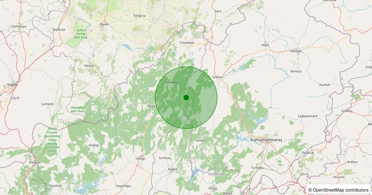 Son 7 gün içinde Saimbeyli - Karakuyu noktasından 100 km yarıçap içerisinde meydana gelen diğer depremler: