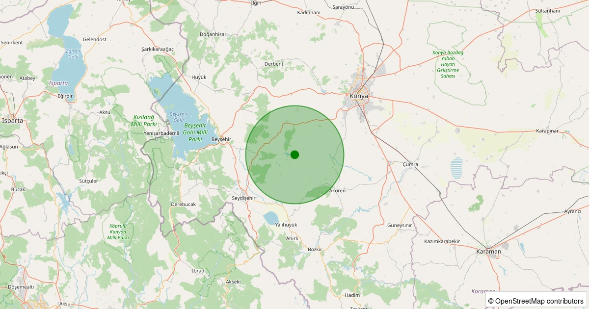 Son 7 gün içinde Meram - Güneydere Köyü noktasından 100 km yarıçap içerisinde meydana gelen diğer depremler: