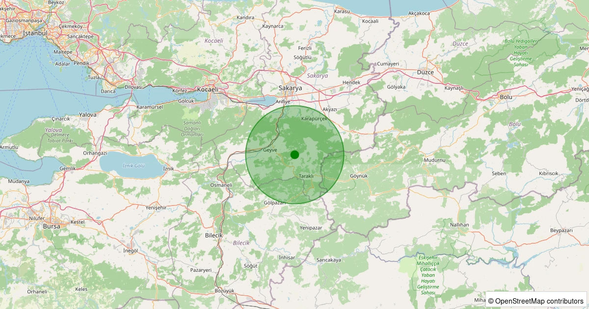 Son 7 gün içinde Geyve - Sütalan noktasından 100 km yarıçap içerisinde meydana gelen diğer depremler:
