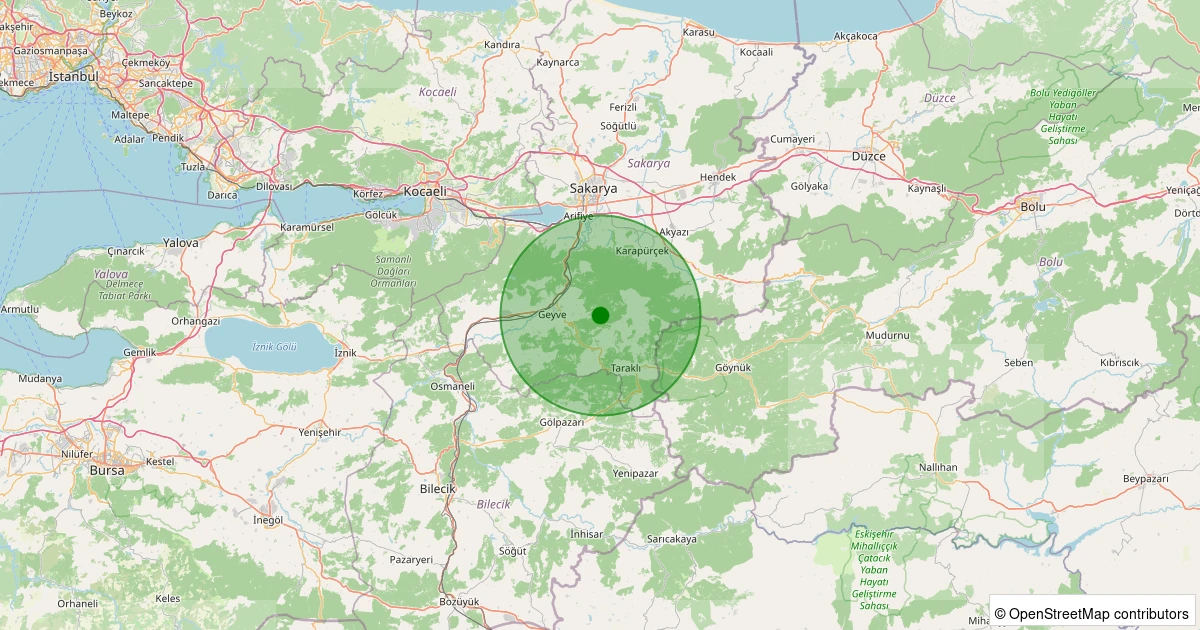 Son 7 gün içinde Geyve - Bağcaz noktasından 100 km yarıçap içerisinde meydana gelen diğer depremler: