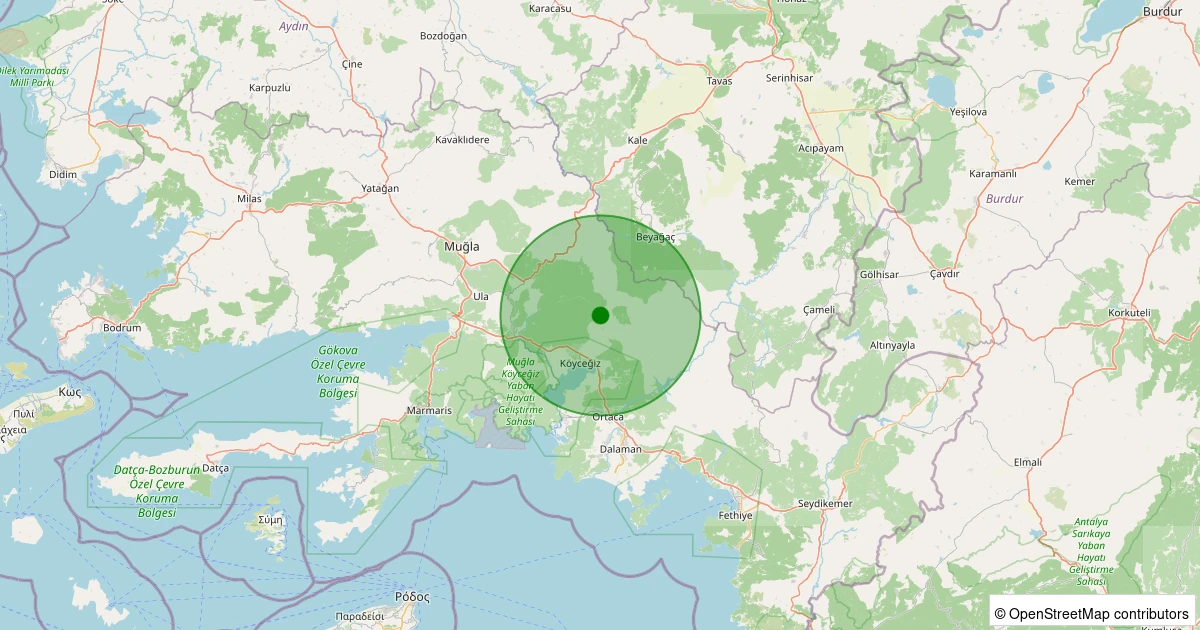 Son 7 gün içinde Köyceğiz - Balcılar noktasından 100 km yarıçap içerisinde meydana gelen diğer depremler: