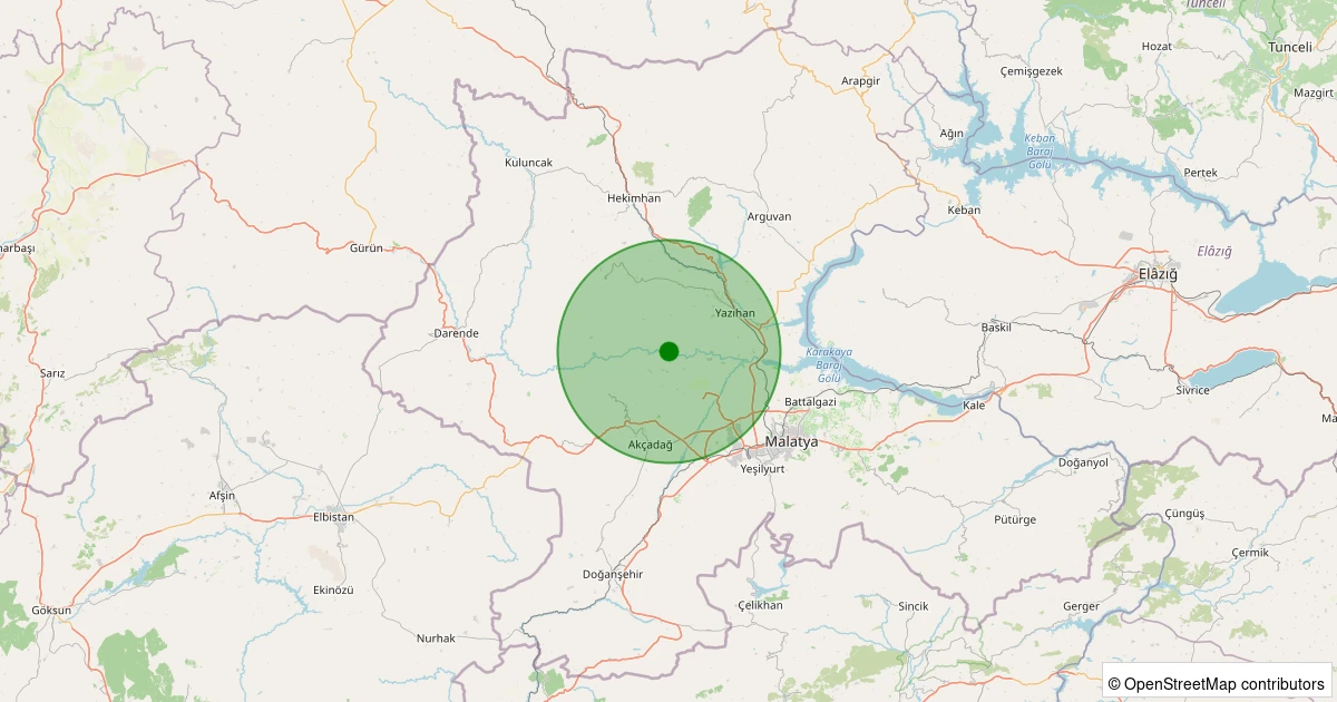 Son 7 gün içinde Yazıhan - İriağaç noktasından 100 km yarıçap içerisinde meydana gelen diğer depremler: