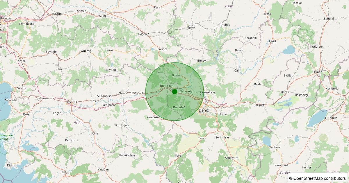Son 7 gün içinde Sarayköy - Tekke Köyü noktasından 100 km yarıçap içerisinde meydana gelen diğer depremler: