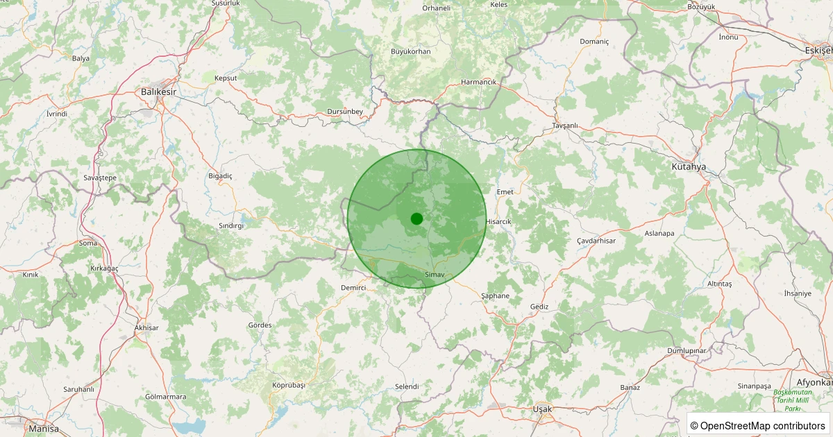 Son 7 gün içinde Simav - Karakoca Köyü noktasından 100 km yarıçap içerisinde meydana gelen diğer depremler: