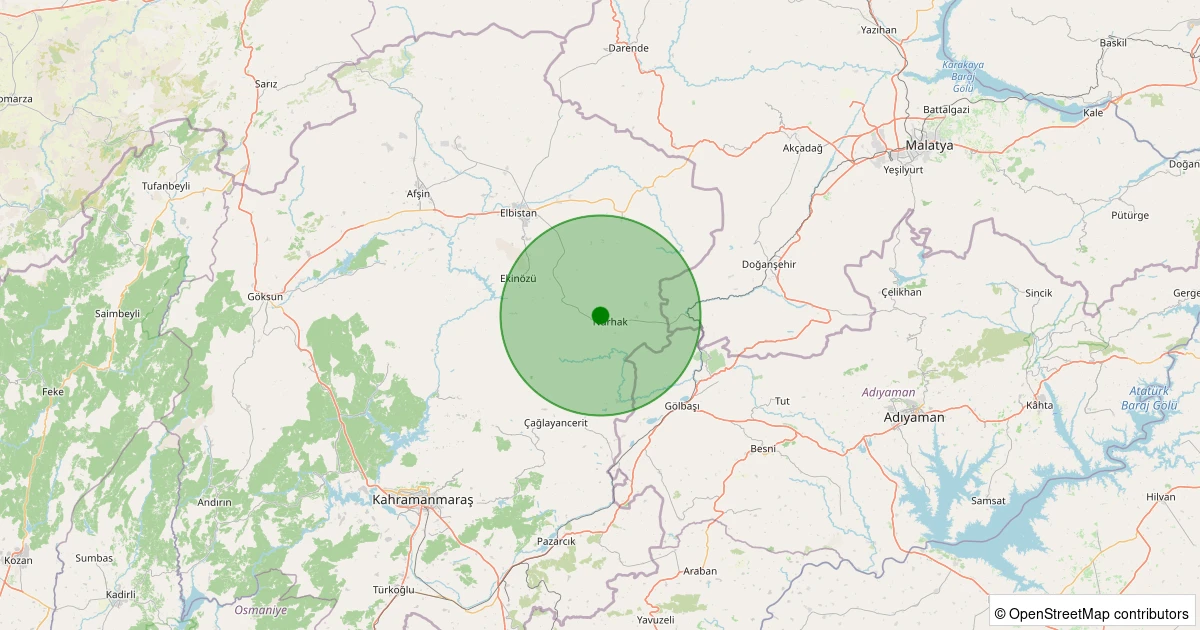 Son 7 gün içinde Nurhak noktasından 100 km yarıçap içerisinde meydana gelen diğer depremler: