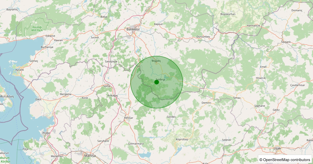 Son bir hafta içerisinde Balıkesir şehri Sındırgı noktasından 100 km yarıçap içerisinde toplamda 694 deprem kaydedilmiştir. Bu depremlerden en büyüğü 4.3 büyüklüğünde ve en sığ odaklısı 0.00 kilometre derinlikte gerçekleşmiştir.
