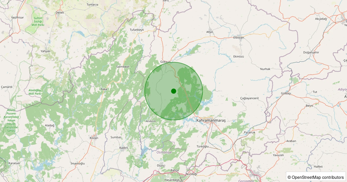 Son 7 gün içinde Onikişubat - Çukurhisar noktasından 100 km yarıçap içerisinde meydana gelen diğer depremler: