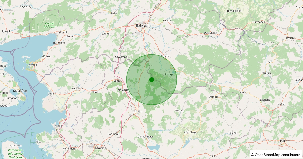 Son 7 gün içinde Akhisar noktasından 100 km yarıçap içerisinde meydana gelen diğer depremler: