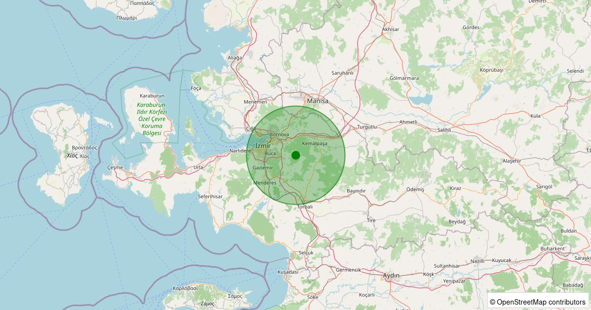 Son 7 gün içinde Buca - Kaynaklar Köyü noktasından 100 km yarıçap içerisinde meydana gelen diğer depremler: