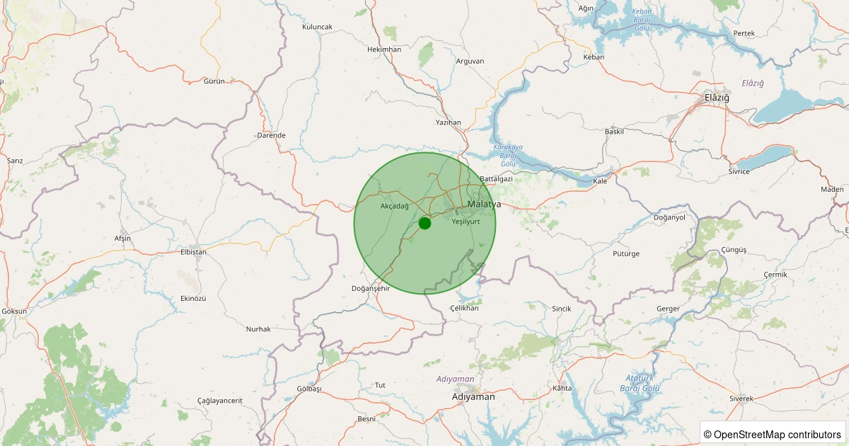 Son 7 gün içinde Akçadağ - Karapınar noktasından 100 km yarıçap içerisinde meydana gelen diğer depremler: