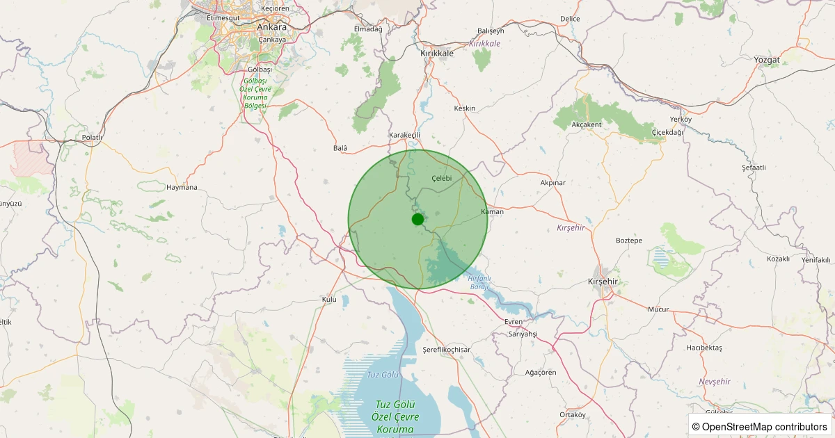 Son 7 gün içinde Bala - Tepeköy noktasından 100 km yarıçap içerisinde meydana gelen diğer depremler: